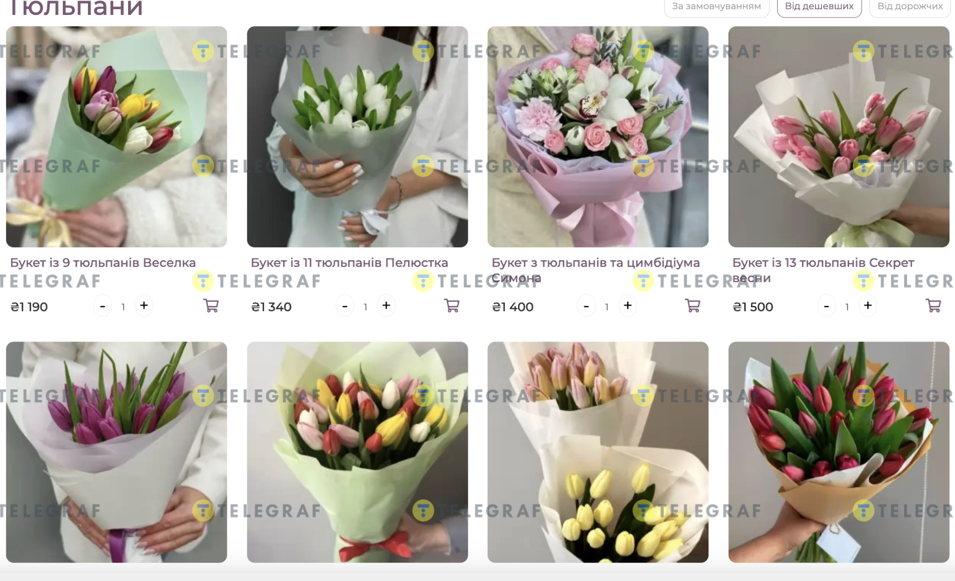 - Харків — вартість букета стартує від 900 грн до майже 6 тисяч. Усе залежить від наповнення та кількості квітів. За букетик з 15 тюльпанів треба заплатити понад 1000 грн, тобто по 70 грн за квітку.