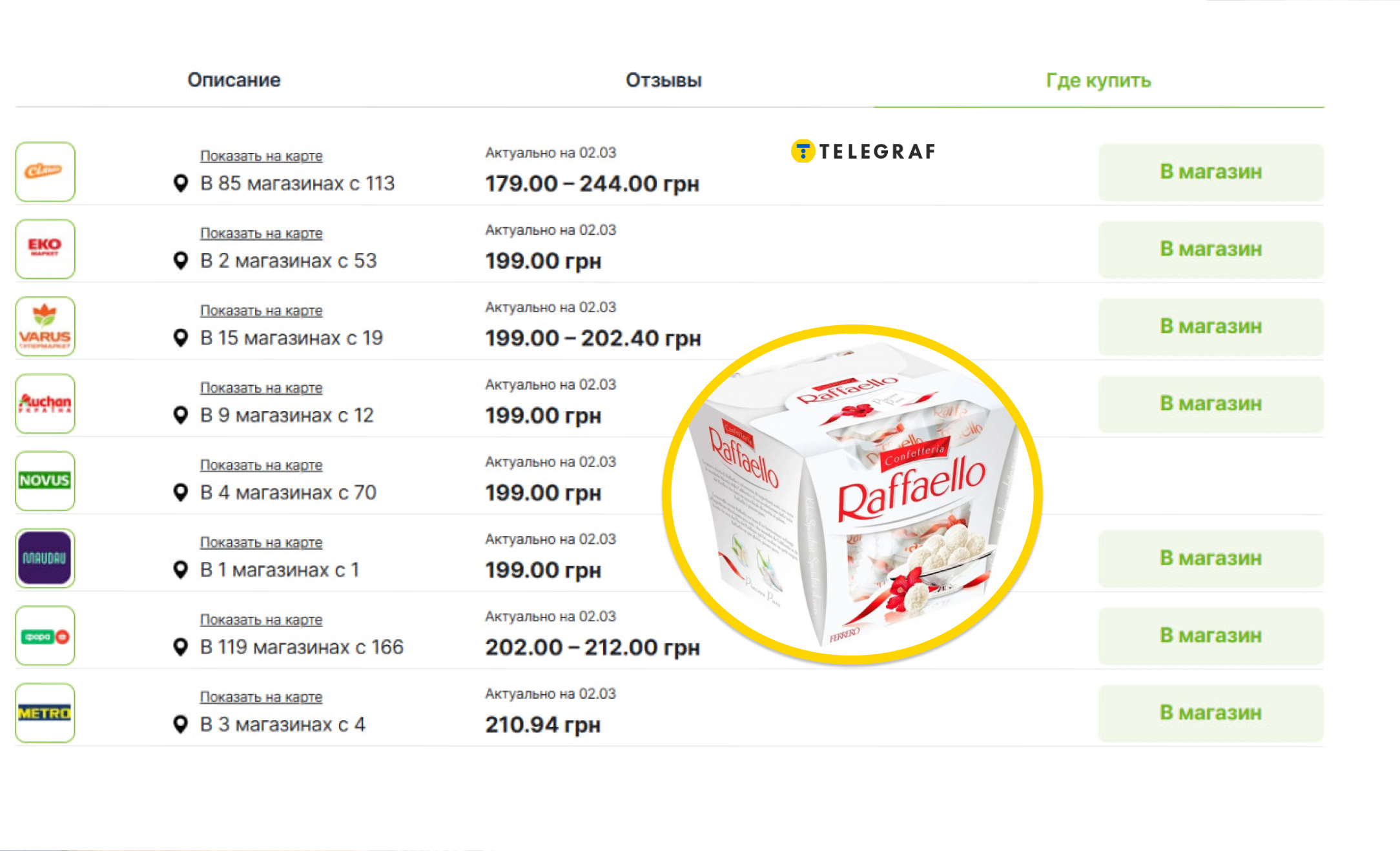 Серед солодкого є порівняння ціни на "Raffaello"