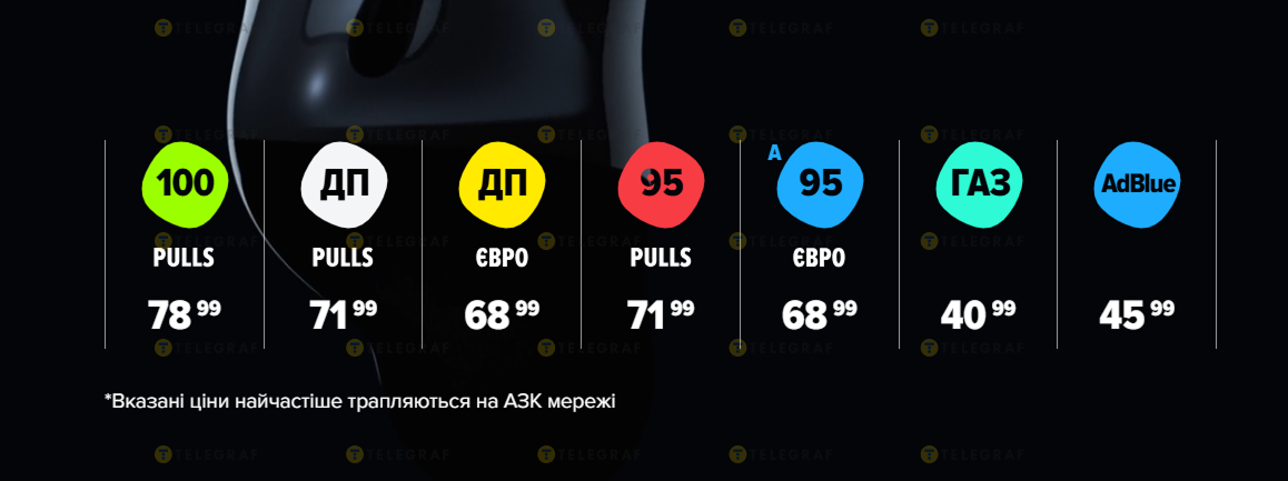 • ОККО 95 євро — 68,99 грн, 95 pulls — 71,99 грн.