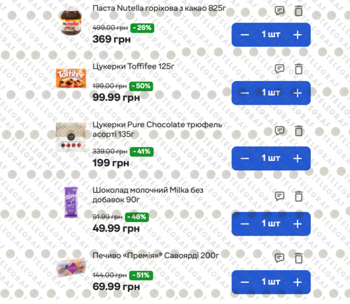 - Цукерки Toffifee (125 г) Знамениті цукерки з лісовим горіхом, карамеллю та нугою зараз коштують лише 99,99 грн. Знижка становить рівно 50% (стара ціна — 199 грн), що робить їх однією з найвигідніших позицій у чеку.