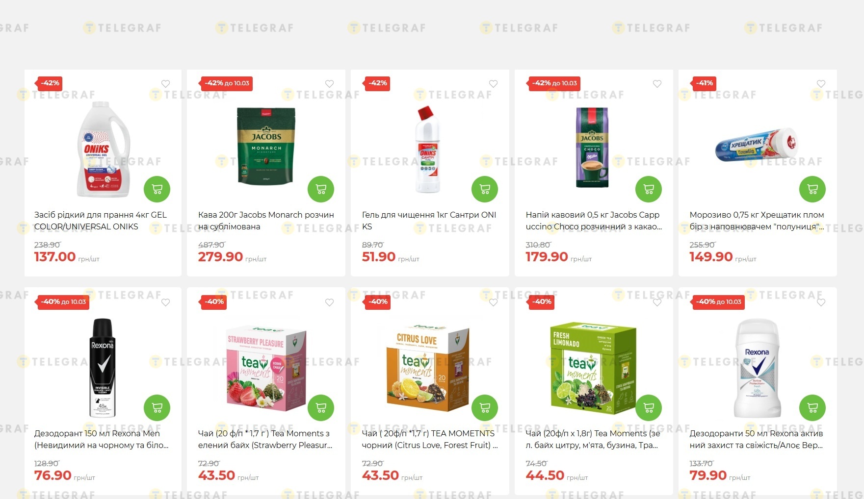 Акційна пропозиція охоплює як продукти харчування, так і побутову хімію та товари для особистої гігієни. Деякі знижки діють лише обмежений час, тому покупцям краще не відкладати покупки. "Телеграф" написав список.