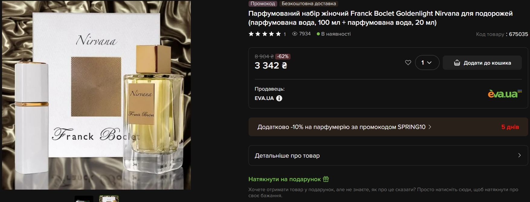 Найбільший розділ акцій — жіноча парфумерія. Тут знижки найвідчутніші, а вибір найширший. Мережа Eva пропонує десятки парфумованих наборів від відомих брендів, причому деякі з них коштують менше, ніж окремий флакон у звичайній ситуації.