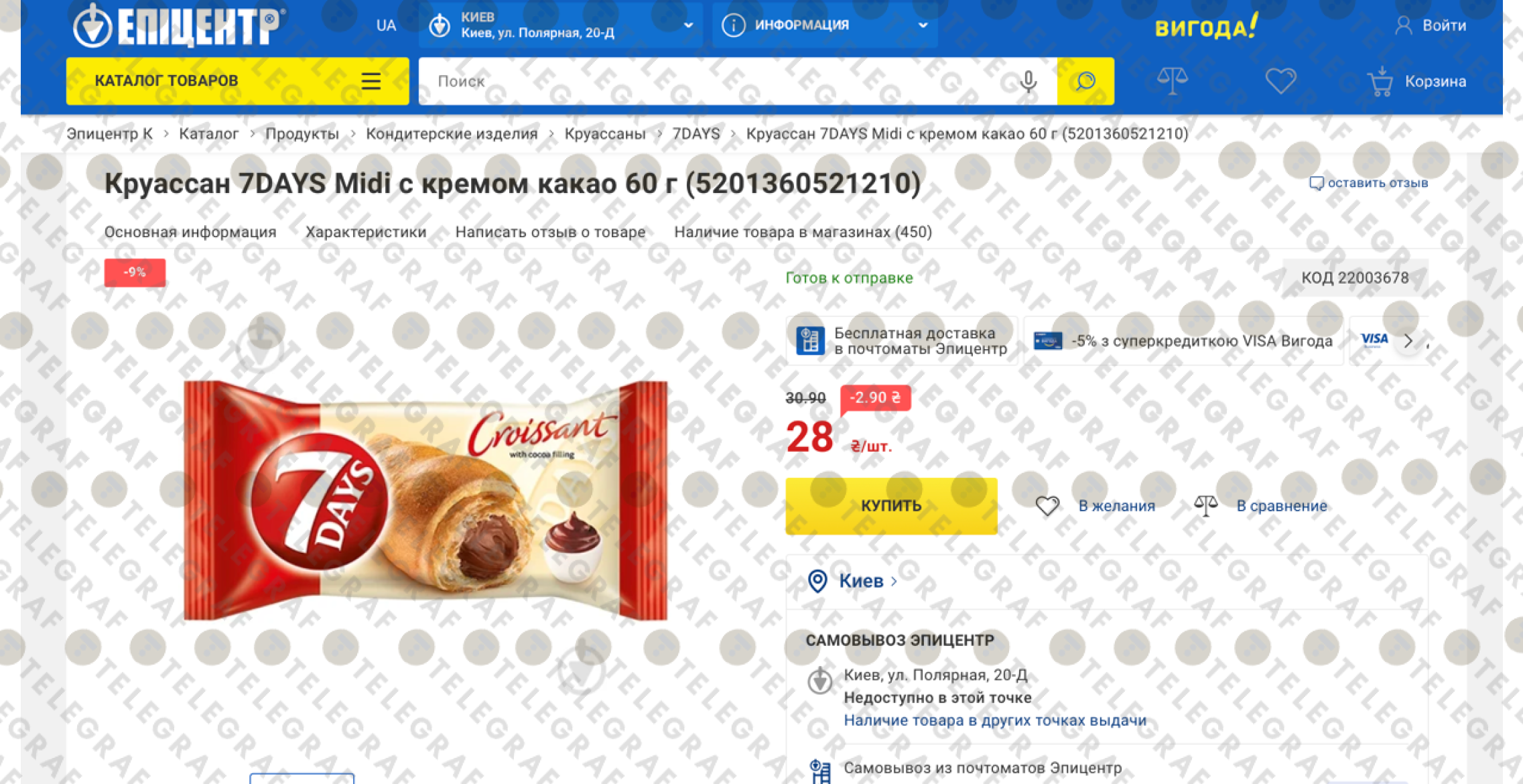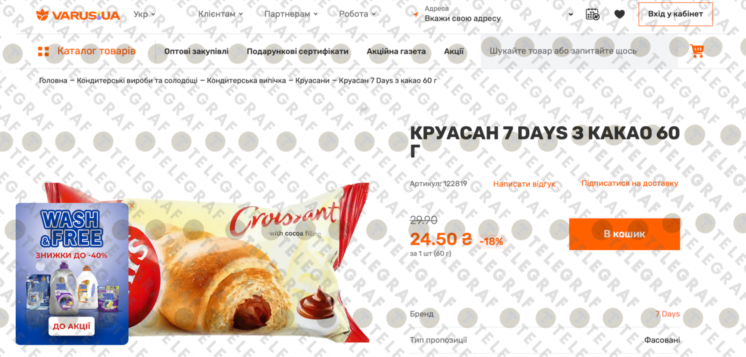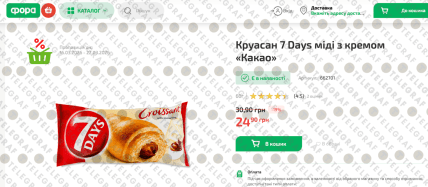 • У "Varus" круасан можна придбати за 24,50 грн (діє знижка -18%).