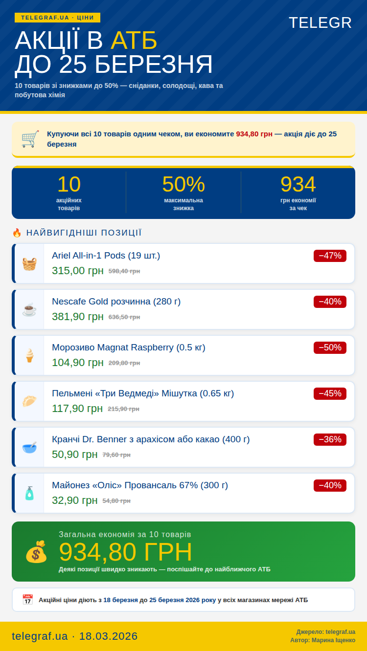 Акційні пропозиції триватимуть до 25 березня. "Телеграф" розповість детальніше про 10 найвигідніших позицій, на які варто звернути увагу.