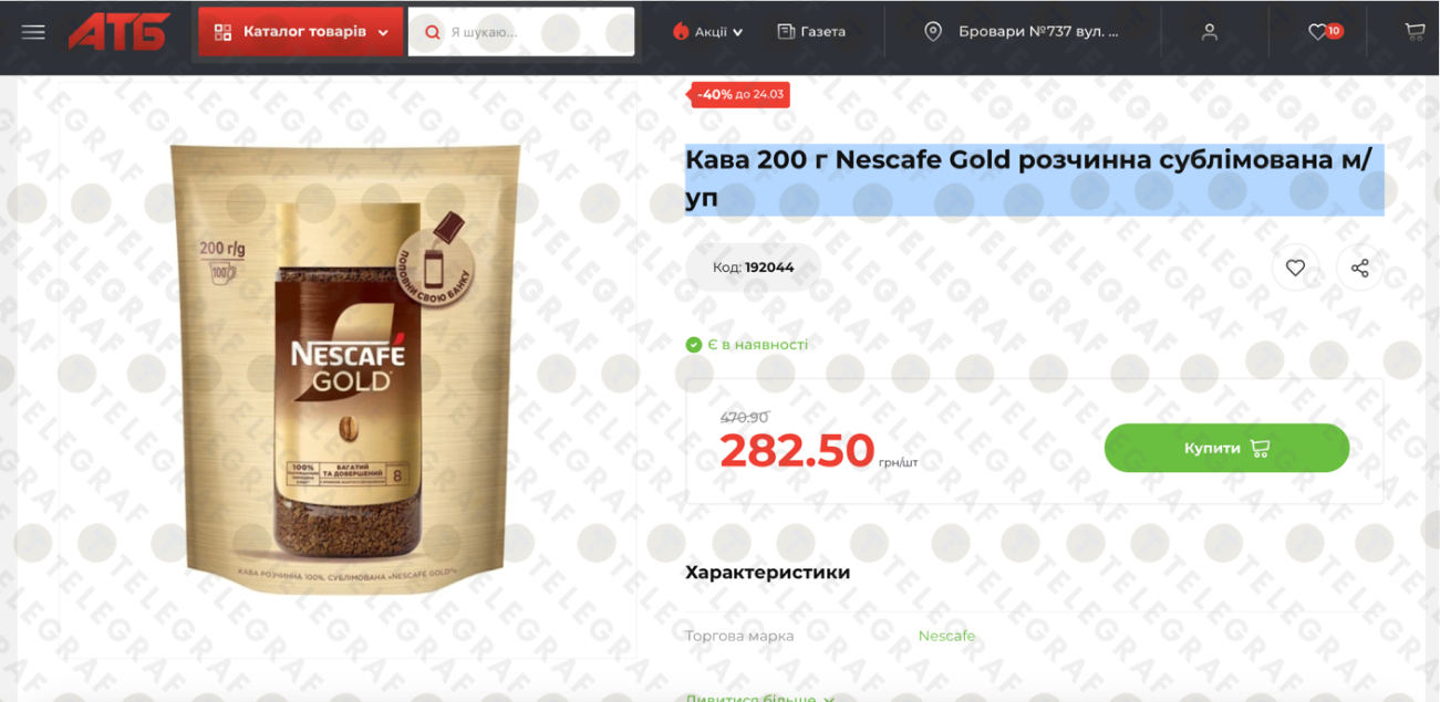 "Телеграф" розповість детальніше про цей акційний товар. Йдеться про каву Nescafe Gold (розчинна сублімована) у м’якій упаковці вагою 200 грамів.