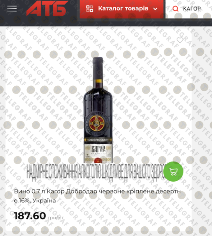 Пляшка традиційного десертного вина "Кагор" (0,7 л) обійдеться приблизно у 187,60 грн.
