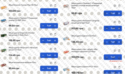 - Найвищі ціни зафіксовані у мережі "Сільпо", де вартість преміальних позицій та яєць вільного вигулу сягає 114–135 грн за десяток.