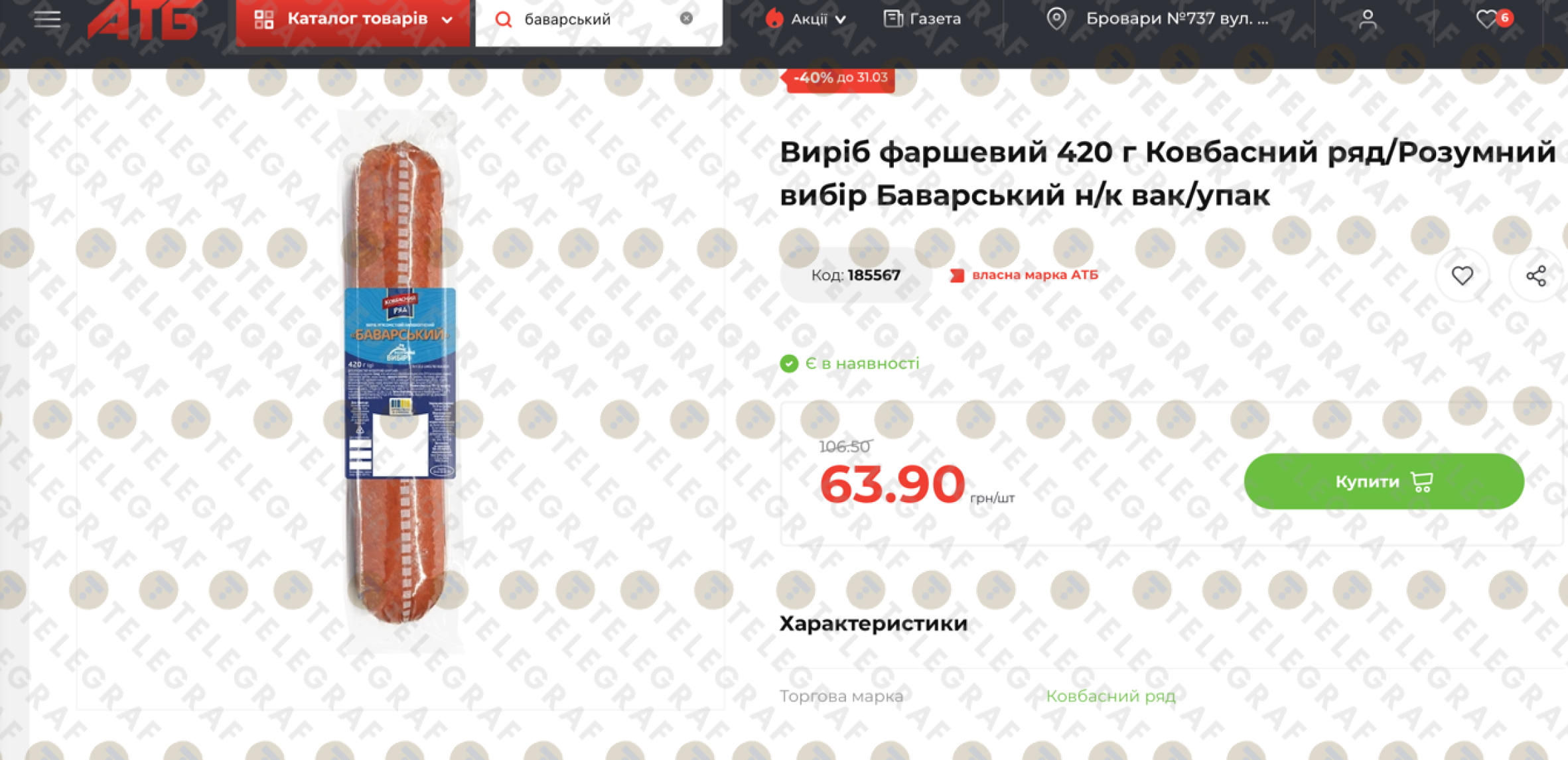 • фаршевий виріб "Баварський" — цінник впав до 63,90 грн (стара ціна — 106,50 грн).