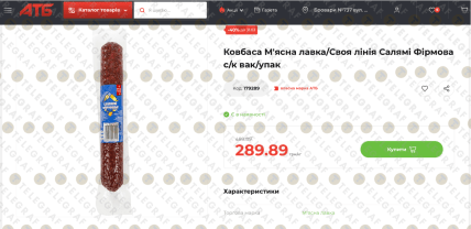 • напівкопчена "Шинкова" (0,5 кг) — тепер коштує 137,90 грн (замість 229,90 грн);