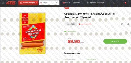 Також вигідна пропозиція діє на сосиски "Докторські Фірмові" ("Своя лінія") у фасуванні 330 г. Завдяки знижці 35% їх можна придбати за 59,90 грн, тоді як попередня ціна становила 92,50 грн.