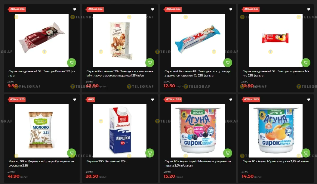 Знижки на молочку в "АТБ" до 31 березня 2026. Фото: скріншот з магазина