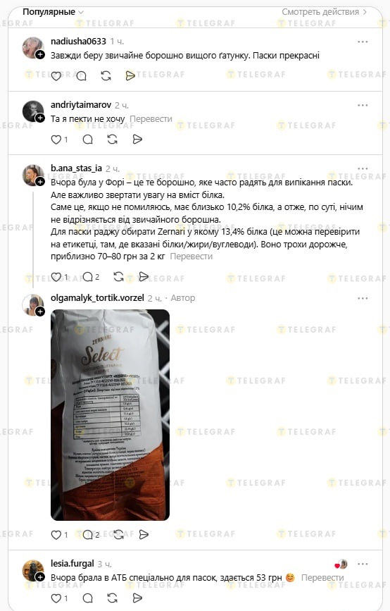 За словами коментаторів, один із ключових факторів — це вміст білка. Саме на цей показник радять звертати увагу при виборі борошна, адже він безпосередньо впливає на якість тіста. У випадку з "Zernari", як пишуть користувачі, цей показник є достатнім для вдалої випічки.