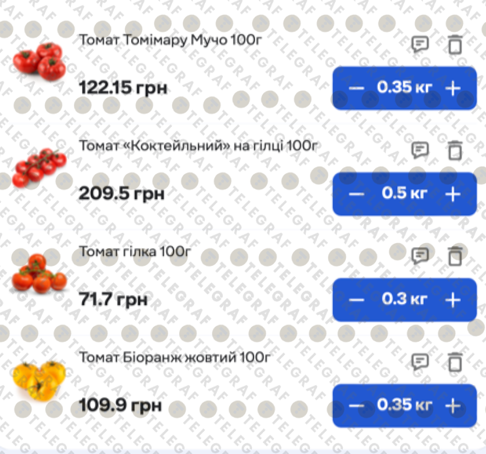 "Телеграф" порівняв вартість різних сортів томатів. Для матеріалу використовувалися дані магазинів: "Сільпо", "Фора", АТБ", "Варус".
