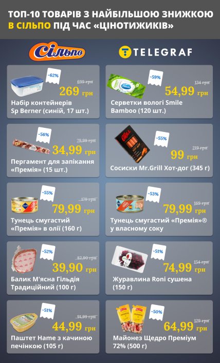 Топ-10 товарів з найбільшою знижкою в Сільпо під час "Цінотижиків"