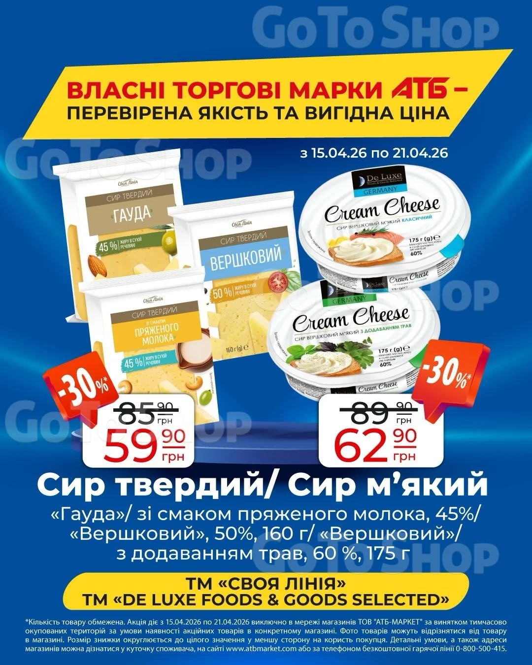Знижки на тверді та м'які сири в "АТБ" з 15 по 21 квітня 2026