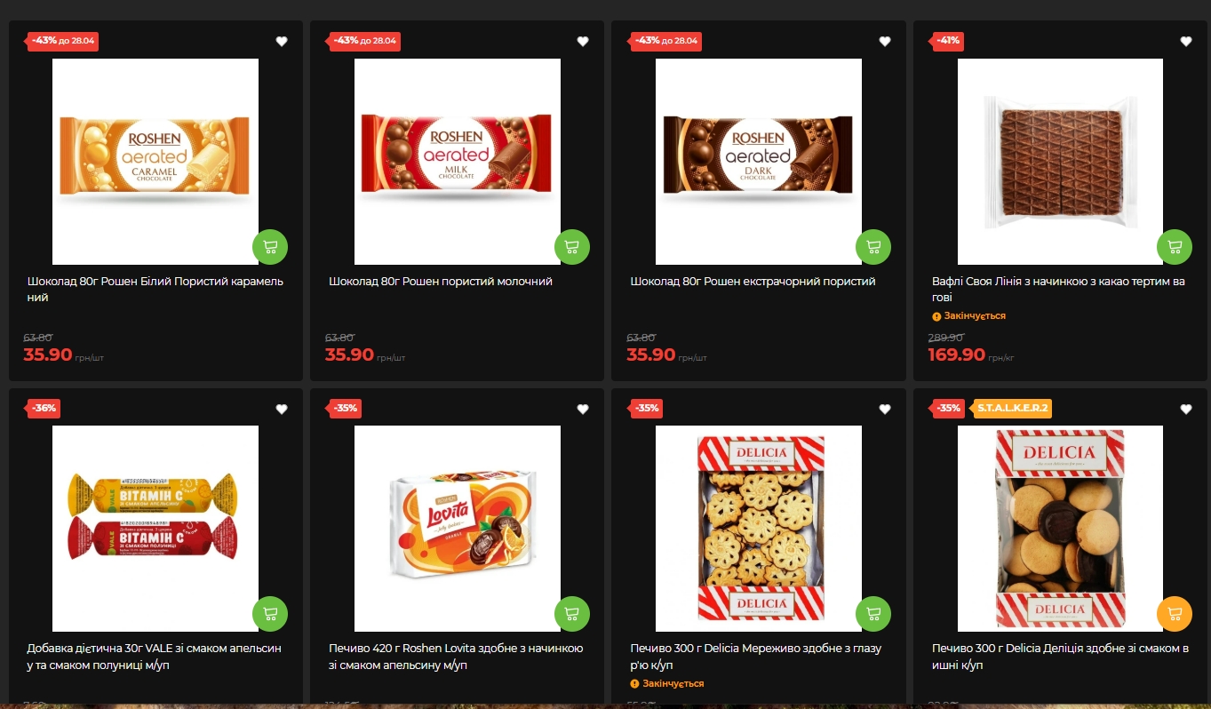 Шоколад Roshen мінус 43%, цукерки, вафлі та печиво: солодкий відділ із великим дисконтом