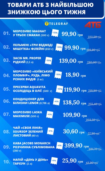 ТОП-10 товарів із найбільшою знижкою в АТБ цього тижня