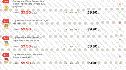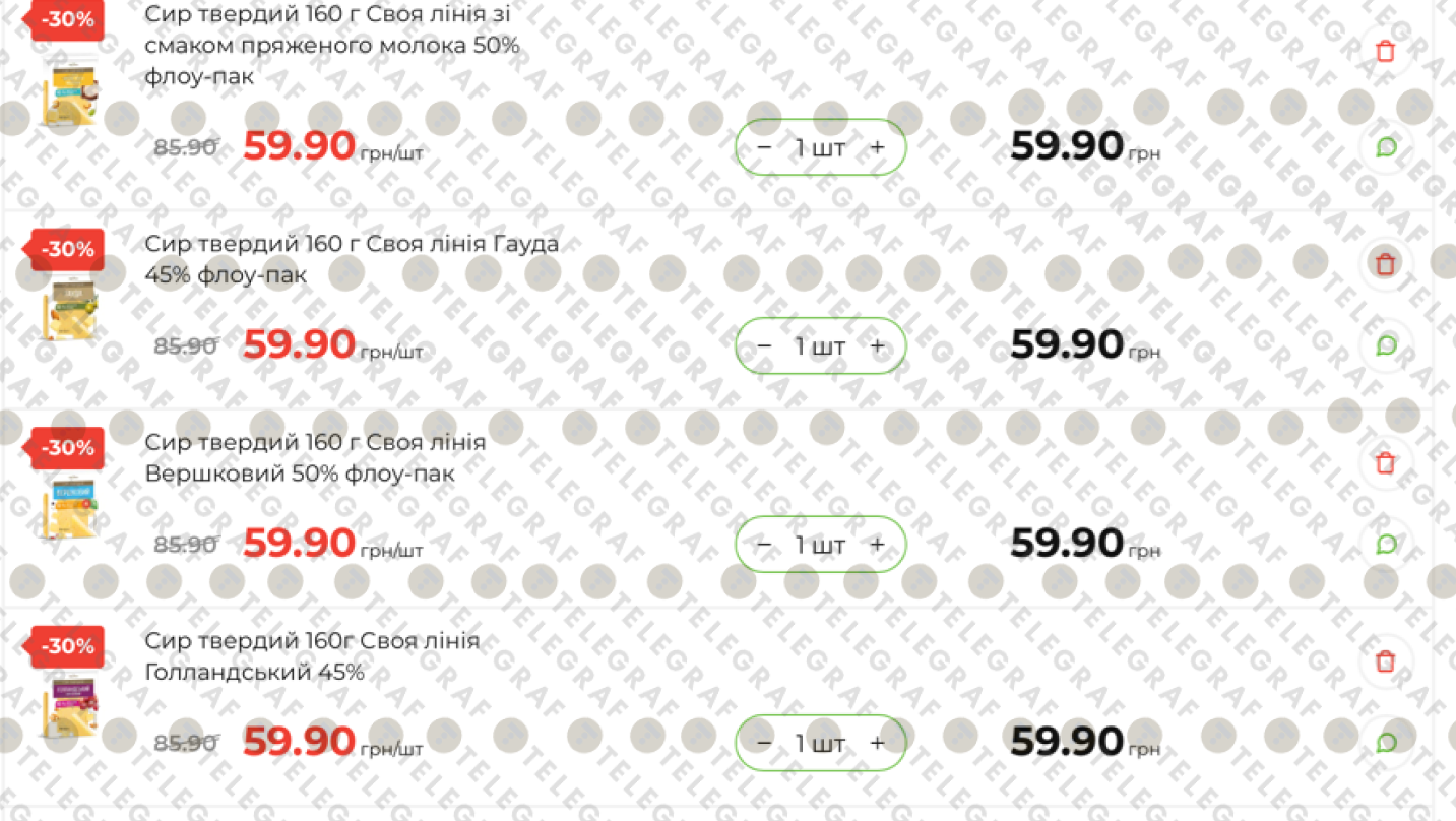 - Сир Gouda (200 г): нова ціна 81,50 грн (було 116,90 грн).