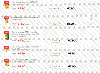 Сири торгової марки Serenada стали доступнішими майже на третину. Ціни на напівтверді сири розподілилися наступним чином: