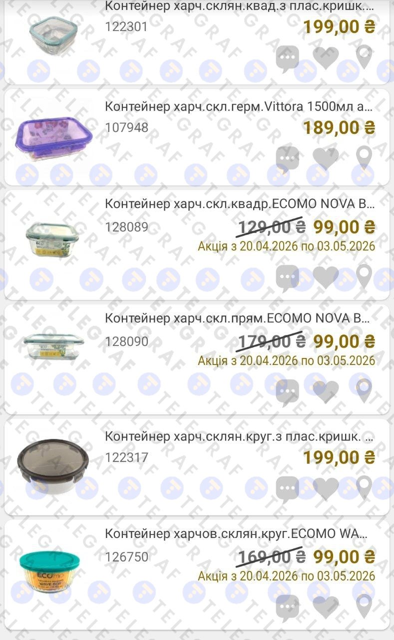 Найбільша знижка на прямокутний контейнер — ціна якого без знижки 179 гривень. Зараз його можна купити за 99 гривень та зекономити 80 гривень.