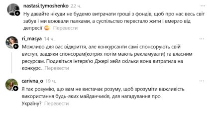 Коментарі під дописом про критику Нацвідбору на Євробачення. Фото: threads