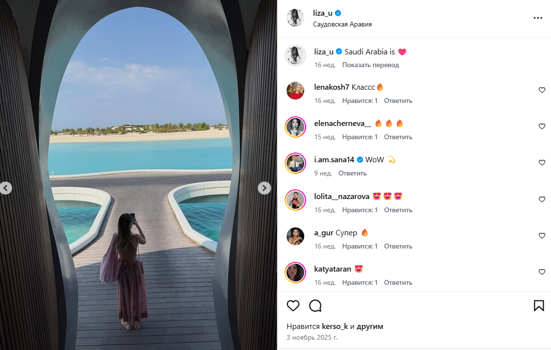 Ліза Ющенко у Саудівській Аравії. Фото: instagram.com/liza_u/