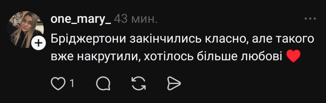 • "Бріджертони закінчилися класно, але такого вже накрутили, хотілося більше кохання".