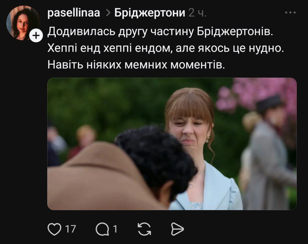 "Телеграф" з’ясував, які почуття викликав фінал четвертого сезону "Бріджертонів" у користувачів. України поділилися своїми відгуками у Threads.