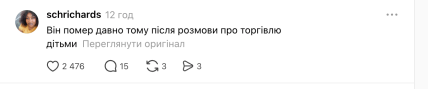 - "Він помер давно після того, як говорив про торгівлю дітьми".