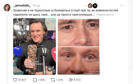 У мережі Threads обговорюють, що змінилося не тільки обличчя Джима Керрі, але навіть його колір очей та поведінка. Деякі шанувальники припустили, що легендарний актор помер, а замість нього на публіку вийшов двійник: