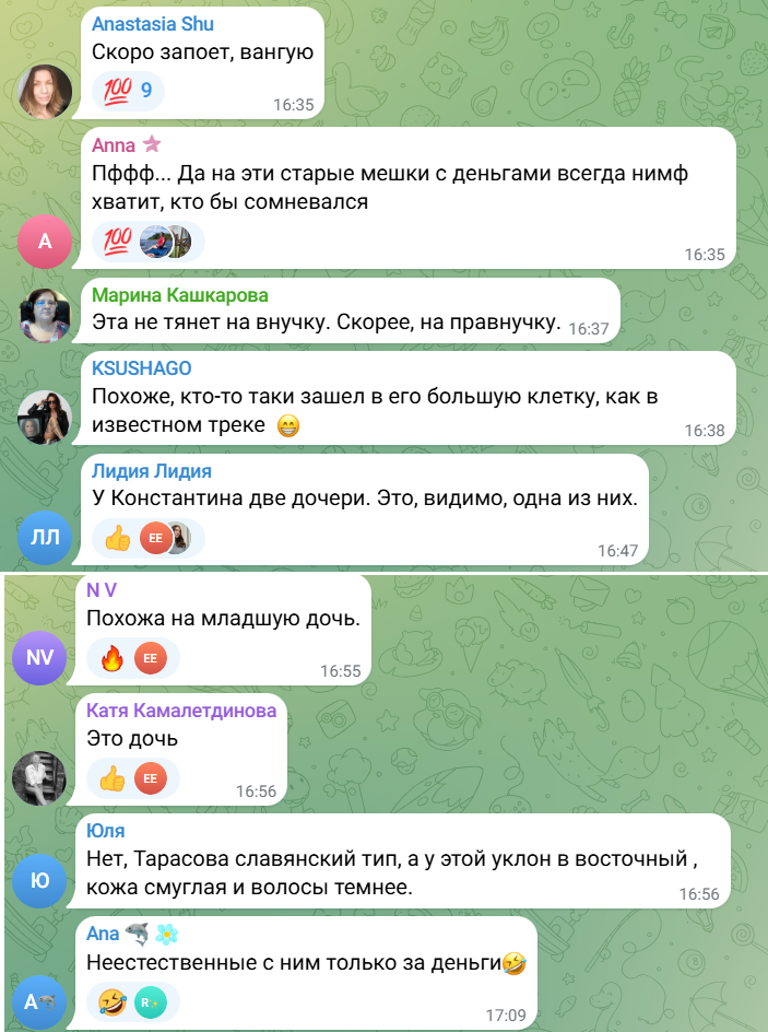 У коментарях почали бурхливо обговорювати 62-річного продюсера та його нову молоду пасію, яка замінила йому Віру Брежнєву. Ось що пишуть користувачі у коментарях: