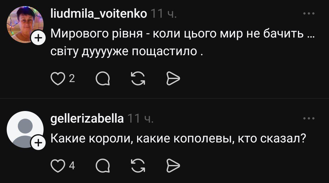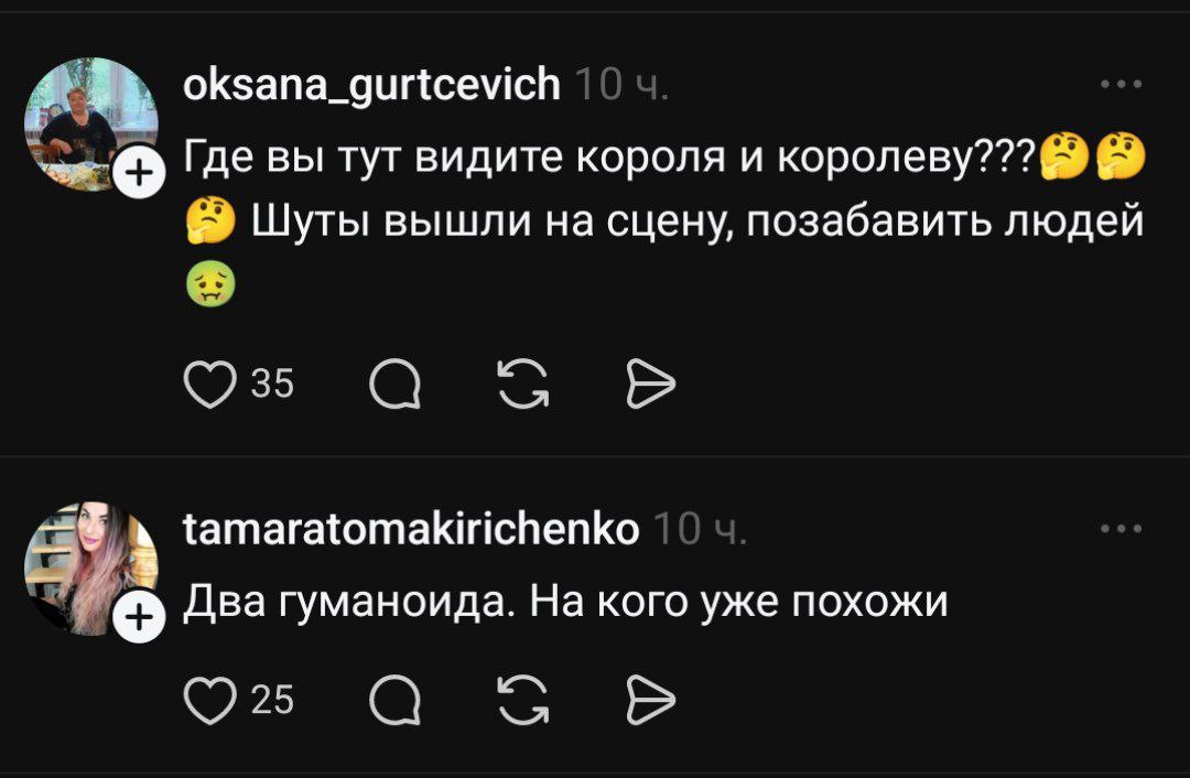 Автор посту назвав Лорак і Кіркорова "королем і королевою", проте коментатори заявили, що вони більше схожі на блазнів чи гуманоїдів: