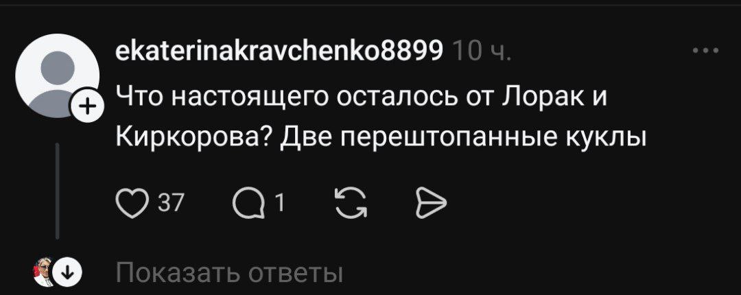 - "Що справжнього залишилося від Лорак та Кіркорова? Дві перештопані ляльки";