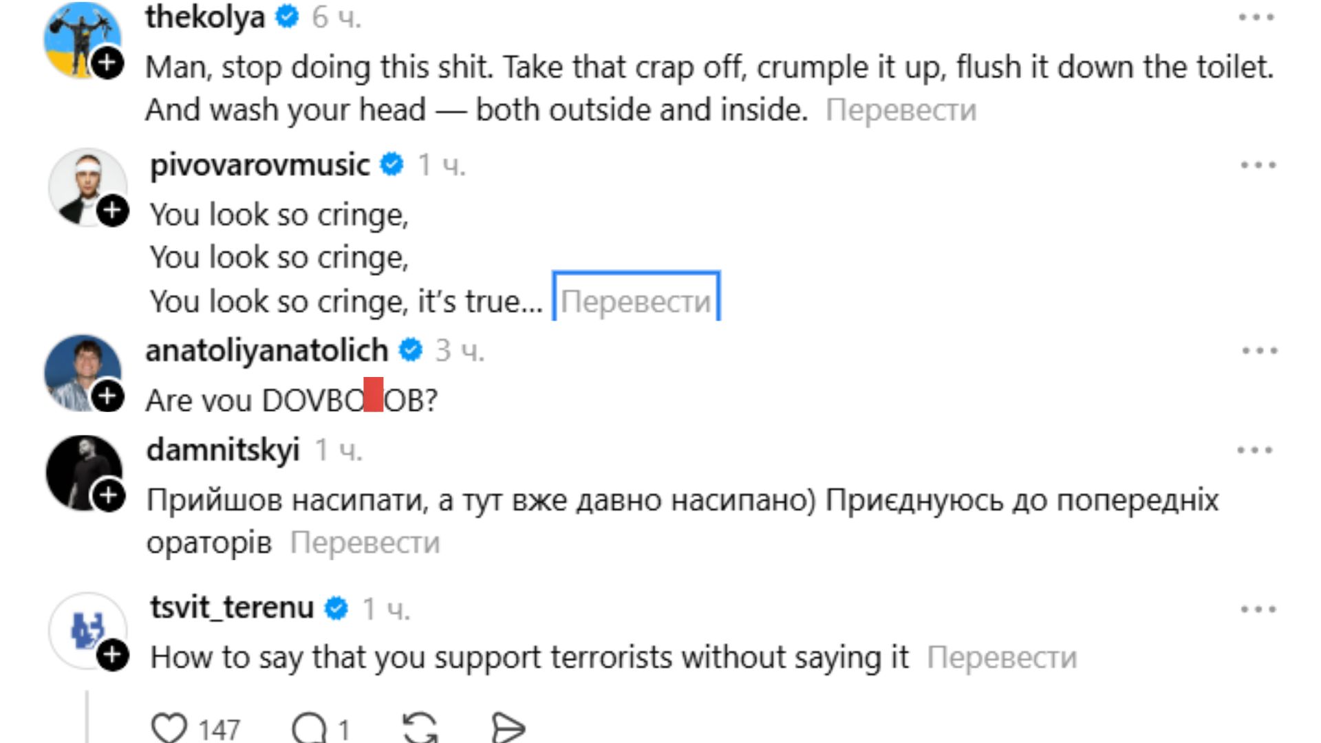 Соцмережі буквально вибухнули хейтом у бік співака. У коментарях з'явилися навіть наші селебріті, які вже встигли розкритикувати свого британського колегу. Фото із радянською символікою Блант виклав у Threads.