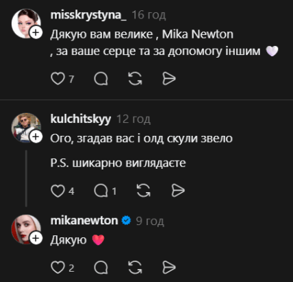 Інші користувачі приємно здивувалися подарунку від співачки. Дехто з ностальгією навіть пригадав її російськомовний хіт "Белые лошади", який приніс Ньютон широку популярність ще у 2007 році.