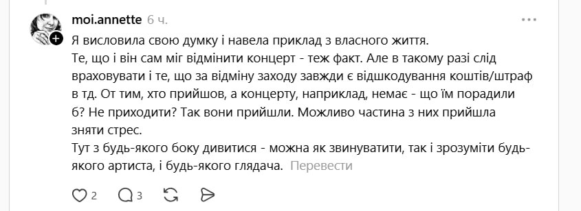 На сторінці в Instagram артиста з’явилися Stories з концерту. Але це викликало хвилю обурення в Threads, багато українців вважають, що танці та пісні в жалобні дні є недоречними.