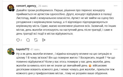 Але в коментарях знайшлися і ті, хто заступився за Козловського, оскільки рішення про відміну концерту мала прийняти місцева влада:
