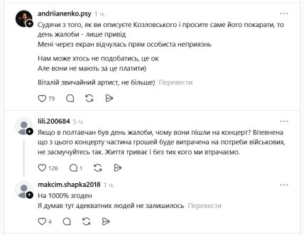 Багато хто підтримав автора публікації, зазначивши, що це було зневажливо з боку самого Віталія Козловського та людей, які все ж таки прийшли на цей концерт: