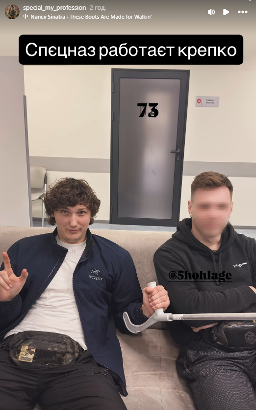 У середу, 25 березня, Дмитро поділився у сторіз свого Instagram новою фотографією. На знімку чоловік зображений у приймальному відділенні разом зі своїм побратимом, обличчя якого приховано. Сидячи на дивані, обранець ведучої тримає у руці милицю.