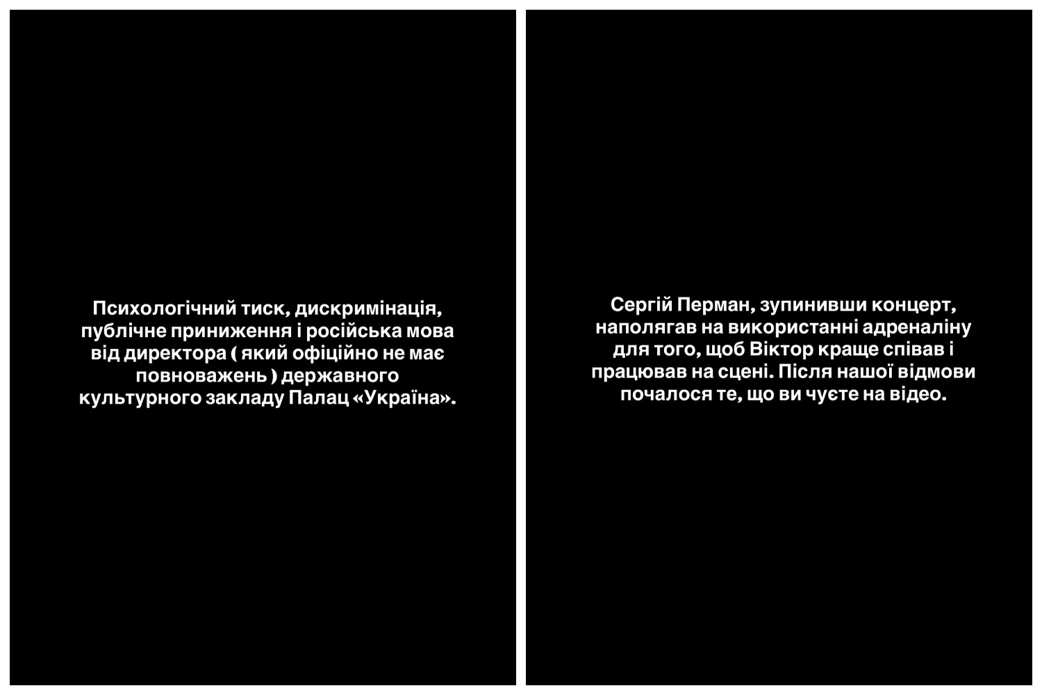 Також Катерина заявила, що продюсер несподівано зупинив концерт та хотів уколоти співаку адреналін. Але дружина була проти, чим ще більше розлютила продюсера.