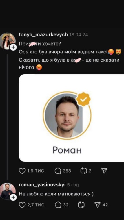 Тривалий час пост залишався просто ще однією вірусною історією з соцмереж. Але 30 березня ситуація отримала неочікуване продовження — сам Роман Ясіновський зайшов у коментарі й коротко відреагував на написане: "Не люблю коли матюкаються".