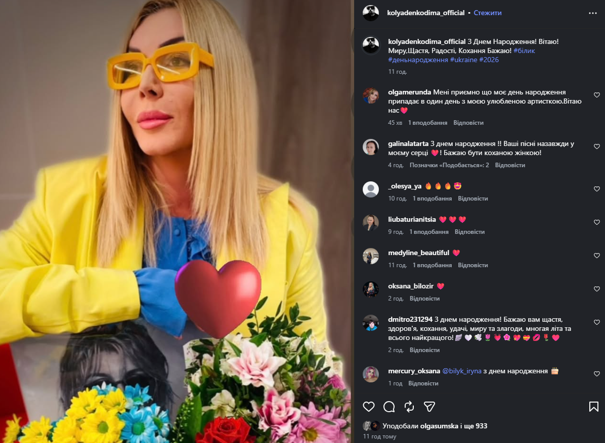 Одночасно Білик дякує кожному шанувальнику з привітаннями в instagram. "В свій День народження хочу зізнатися в коханні кожному з вас! Кожному, хто поруч зі мною в моменті, в музиці, в словах і між рядками✨ Ваша любов і підтримка — це те світло, яке не згасає навіть у найскладніші дні", — написала виконавиця. У свій особливий день зірка запрем'єрила переклад хіта "О любви" з альбому "Любовь. Яд", що вийшов у далекому 2004 році.