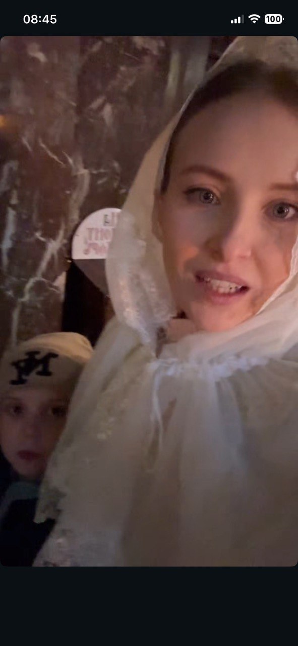 Акторка Анна Сагайдачна провела цей момент із сином — разом вони були в церкві під час освячення. Зірка "Кріпосної" показала милі відео в сторіс і додала, що паскою її пригостила подруга.
