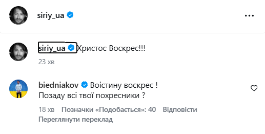 Телеведучий Андрій Бєдняков у коментарях пожартував: "А це позаду всі твої похресники?". Це через те, що у подкасті з Антоном Тимошенко волонтер розповідав, що має 45 кумів і 11 похресників. Комік не упускав цей момент для жартів.
