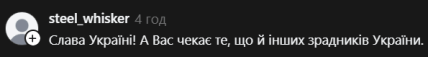 - "Слава Україні! А на Вас чекає те, що й інших зрадників".