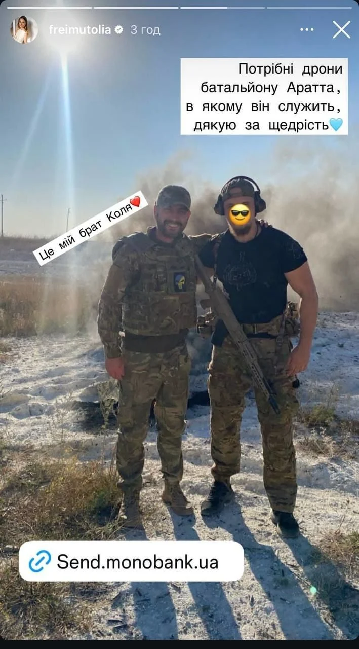 Це не перша згадка про службу брата Фреймут. Ще у 2024 році ведуча публічно долучалася до зборів коштів на потреби підрозділу, в якому він воює. Тоді вона закликала підписників підтримати бійців.