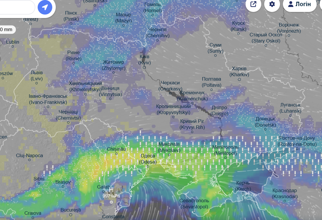 Про це свідчать дані порталу Ventusky. За прогнозами синоптиків, з 26 січня крижані дощі очікуються у південних областях (на карті погоди їх позначено знаками оклику).