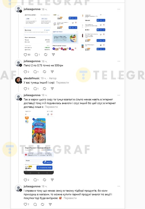 Частина користувачів заявила, що така різниця не відповідає дійсності, і що однаковий набір продуктів можна придбати в обох магазинах за схожу суму.