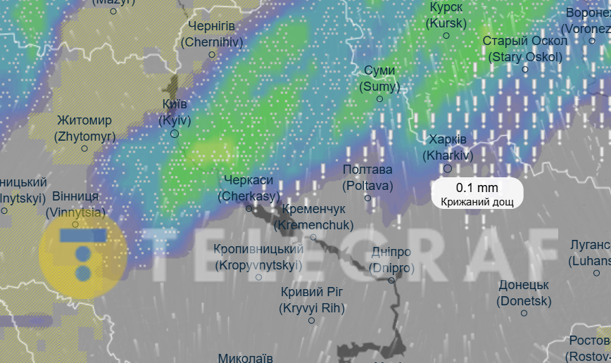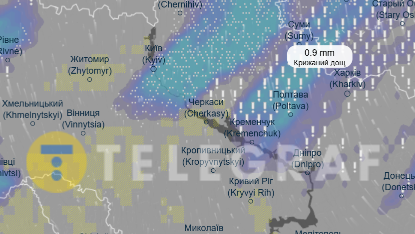 У середу крижаний дощ може пройти до 16 години у Харкові, Сумах та Полтаві.