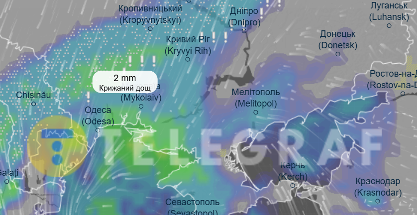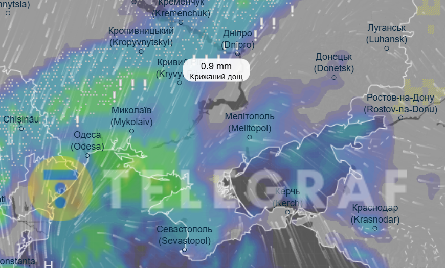 Крижаний дощ у Миколаєві 30 січня. Скріншот: Ventusky